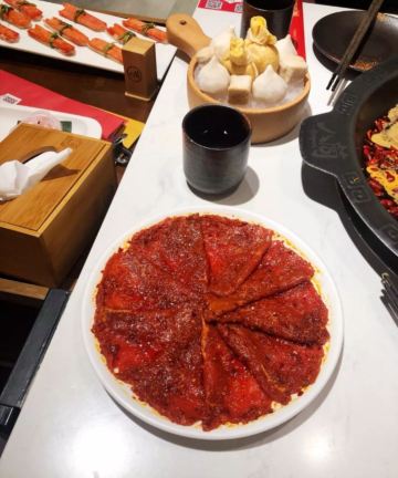 武汉好吃的火锅很多,网红的火锅和排队的也就更多了。 这家装修很日式清新,一点也感觉不出是个火锅店。 菜品新鲜,而且很多别家吃不到的菜,比如黑豆豆腐,比如什么什么蟹柳(忘记名字了,就是蟹柳切成千丝状中间用贡菜绑起来)。 其他火锅店的标配,他们家会更用心,比如酥肉,一定是新鲜现炸的。 招牌推荐:牛肉、广式香肠、酥肉、肉多多午餐肉、蟹柳、椰汁燕麦冰粉。