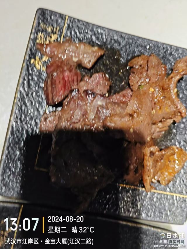 居于城南🥩居之武汉探店 之 久藏隔膜烧肉•酒场 📍地址:江汉二路135号金宝大厦1楼 (交通:乘坐地铁江汉路站A出口走个几百米) 晚上开车来不是很方便⚠️ 因为夜市开始后就不好挪车了,亲身体会 中午来附近很好停车 电话提前预约会给你安排座位 省去到店排队等待❗️❗️❗ 🏮环境:⭐️⭐️⭐️半 店面不大,整体就两层楼,座位也不多 虽然有些老旧,不过布置上很温馨 喜欢那盏昏黄的灯笼🏮 喜欢那日式动漫电影🐱 营业时间直到凌晨,夜色后的酒场应该很热闹些 🍖菜品:⭐️⭐️⭐️⭐️ 「久藏和牛隔膜」 调料腌制过后,炭火烤制七分熟左右 夹杂上黄油蒜片,带点筋道的口感,肉质鲜嫩 「上等三筋」 诱人的颜色,层次分明,撒上调料 烤至变色即可,蘸上我最爱的辣椒粉,好吃 「久藏和牛烧」 薄薄一片,鲜艳的色泽 烤制一会就熟了,蘸无菌蛋吃口感变的滑嫩 没有腥味,肉质很新鲜,个人有点吃不惯 「久藏五花肉」 渐变色泽的五花肉颜值很高 烤的时间有点长,烤到外表变焦,蘸上辣椒粉 一股焦香的味道,紧实微嫩的肉 「秘制鸡肉」 鸡肉提前腌制好,滑嫩的鸡肉 口味还是有点淡,蘸点酱料会更好吃 「冰淇淋面包」 将面包烤至焦香变色,中间裹上冰淇淋 松软酥脆的面包与香甜冰凉的冰淇淋完美融合 💓服务:⭐️⭐️⭐️⭐️⭐️ 全程帮忙烤,有求必应 烤好了直接吃幸福满分 整体菜品的新鲜和色泽都无可挑剔 就是份量有点少,口感很鲜嫩 体验品质牛肉不可错过🌟