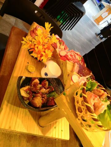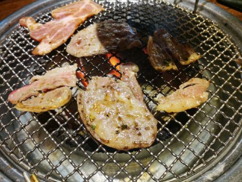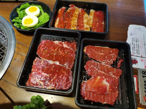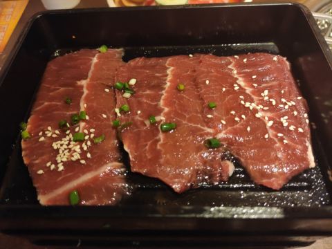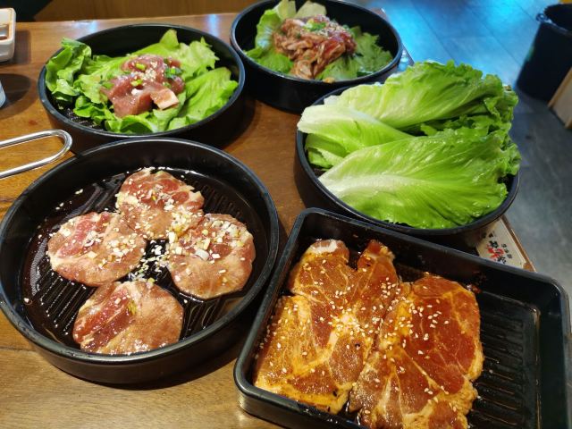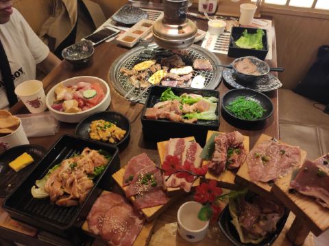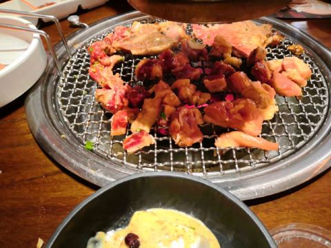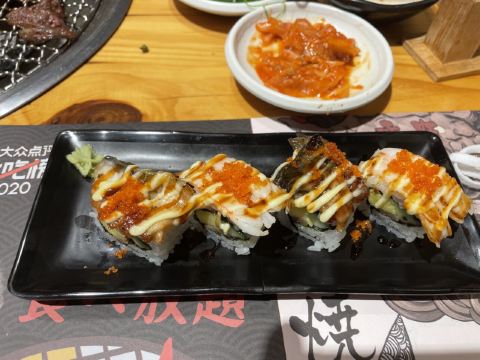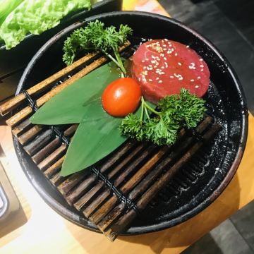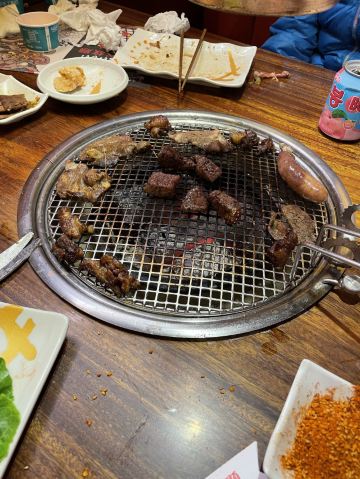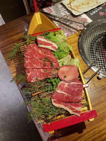 十一呀。说在前面🙄️🙄️🙄️被安利过好多次的,但有一说一,不知道是营销手段还是怎么的,不支持线上取号,这对上班族来说不友好,只能休息日来,但是休息日的江汉路哪哪都排队,于是就有今天的4.13取的号,将近5.才进去,不断的有人来取号,4.30来的就被告知至少6.30才能进去了,总之排队是真的久! ——位置📍 江汉路新佳丽广场4楼,1楼名创优品的扶梯上来就是 ——环境🍃 个人觉得空间略有点小,火真的是只有中间那一块,特容易糊,抽油机的效果也不是特别好,油烟有点大 ——服务💁 叫号进去后先在前台验券,然后在座位上扫码点单,因为是限时的,所以下单和等菜的时间也是在里面的,不过还好,上菜都挺快,这点不错 ——分割线—— 「大福」有抹茶、芒果、巧克力三个味道 「甜虾」个人觉得虾🦐不太新鲜,肉不Q弹 「牛仔骨」这个不错,烤出来很嫩 「水果豆花」我要吐槽一下这个,真的是一言难尽,就很小的一个纸杯?纸碗?口感像果冻,上面放了4小块西瓜🍉… 「牛肉粒」口感不错,就是容易糊,有点难烤 「章鱼小丸子」这个不好吃,里面包了一根章鱼🐙须,一口咬下去是灰面坨坨的感觉 「芒果绵绵冰」像芒果冰激凌的味道 ——最后⏸ 总的来说还算是不错的,以肉居多,素菜种类较少,肉食爱好者可以来尝试,缺点就是烤肉比较费时,毕竟限时2小时。‼️‼️‼️一定至少提前半小时来排队