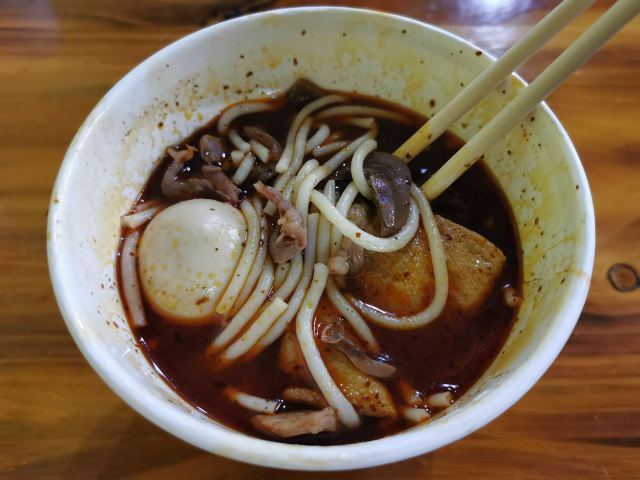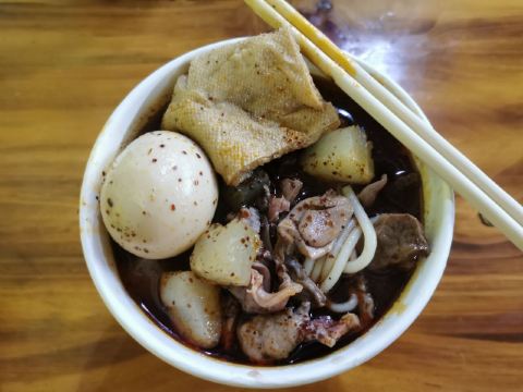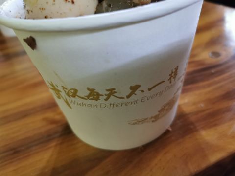 武汉行的最后一站,在凉凉的深秋一碗还魂。环境就很一般,旧旧的,小两层。选的是生烫四合一,牛肝、牛心、牛腰、鸡胗+细粉+干子+卤蛋。装在一次性纸碗里,不提供勺子。微辣还是偏辣,表面的红油锁温又增香。牛杂鸡杂鲜嫩无腥味,是我爱的那一口。顺便尝了隔壁现做的肉饼,三块一个,也不错。