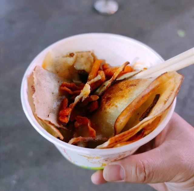 它们家曾经是司门口的网红店,有很多慕名而来打卡的人,当时也有幸吃过一次,不过是新鲜感居多吧,所以没怎么在意味道。时隔多年又故地重游了,果断买了份试试。 店子里面不大,没有堂食的座位,所有的枯豆丝都是现做的,一份价格好像是十五,里面还会搭配上凉拌麻辣萝卜丝这些,裹着还还行吧,谈不上特别惊艳的味道,所以别期待太高,随便吃吃还是可以的。