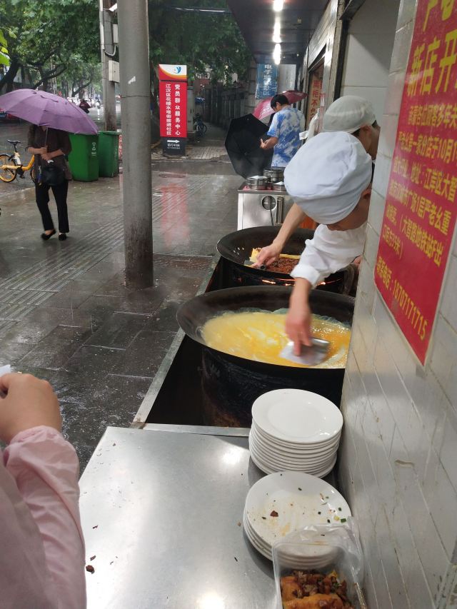 Yan Lao Yao ShaoMai总评: 虽然我排了很久的长队,但是呢,我还是觉得挺值得的。 也许有人说不正宗不好吃,但是呢我个人觉得还不错呀。 算得上物美价廉嘛,很多款武汉小吃都能一站式打卡,还方便呢。 如果你到武汉想找一家尝尝鲜,这家我是推荐的,你试试呗。 评分:80分 性价比:❤❤❤❤ 去武汉转机,顺便赶到市区过个早,感受一下武汉的美食。 十一那天一大早的赶过去,还是被排队的巨长队伍给震惊了,可谁让我是游客呢,这次不吃不知道下次是何时了,所以啊,排队排呗,吃完再走咯! 先在收银台点单,然后小哥会给你各种你点好菜品的小票,凭小票在各个食物的制作点去凭票取餐,所以啊,如果 你一个人,想多吃几款,那真的会疯,因为每一款食物面前都是一条长龙,要崩溃呀。 还好我和导哥二人,分工合作,大概不到40分钟吧,我们集齐了我们想吃的食物,然后找了空位坐下,享受这难得的美味时刻。 【重油烧麦】8元一两 一两4个,个头还算是大颗,所以呢不贵哟。 热气腾腾的烧麦都是现做现蒸的,中间的糯米肉馅儿,软糯Q弹还油脂丰富。 其实不腻呀,因为烧麦皮很干爽,这样一油一干搭配起来刚刚好哟,很香的。 【三鲜豆皮】9元 这个更是现做现吃的食物,小哥们的手艺也是相当的麻利顺溜,虽然工序稍微复杂,但是他们做起来还是挺快的,一大块豆皮可以分很多份呢。 豆皮里面也有糯米,所以口感其实和烧麦馅儿有点类似,但是更香一些,食材配料很丰富。一边排队一边看小哥们行云流水的制作过程,也是挺有趣儿的。 【热干面】4.5元 热干面有的人应该吃不惯,但是我觉得挺好的,里面的芝麻酱虽然看起来有些黑暗,但是吃起来很香啊,增加了浓醇的香度。 热干面的面条是比较粗一点的棍棍面,嚼起来还行,本身干拌就很重口味了,所以吃多了或许会腻。 【蛋酒】3元 我喜欢有醪糟的食物,这个现冲出来的蛋花醪糟汤,真的还不错,蛋花嫩嫩的,伴随酒酿淡淡的清香,很顺口。 【糊米酒】3元 糊米酒是怎么做的呢?去科普了一下,就是在酒酿里家汤圆加糯米粉,所以喝起来 有些黏黏稠稠的口感。别的不说了,因为有酒酿我还是喜欢。哈哈。 好啦,点评就这样了。我想自己改天在家做做蛋酒,然后我想早些可以出门吃那些收藏已久的餐厅。 还有就是武汉早日冲破雾霾,重见光明。