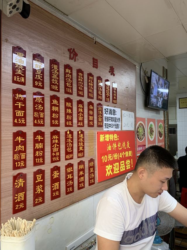 鸡冠饺,鲜鱼糊汤粉,牛肉粉,三鲜豆皮,面窝,热干面,烧卖,蛋酒,重油烧麦,糊米酒,虾仁汤包,香菇鲜肉汤包,烧麦,烧梅,大碗茶,花红茶,红花茶,桂花糊,香菇烧麦,清酒,鲜肉香菇烧麦,大麦茶,香菇鲜肉烧麦,严氏重油烧卖,糊桂花米酒,汤包