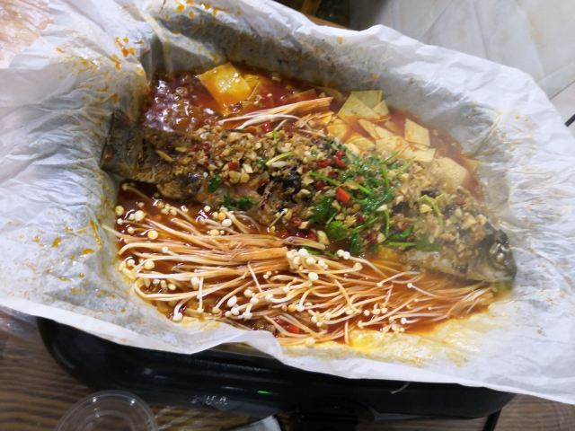 在武汉有很多分店,这家就在户部巷内,每天人气挺旺,大多是冲着名气去的。他家有各种烤鱼,份量足,味道也不错,外焦里嫩的,加上铺垫的豆芽、豆腐等,香辣可口。价格停水会,环境别指望。