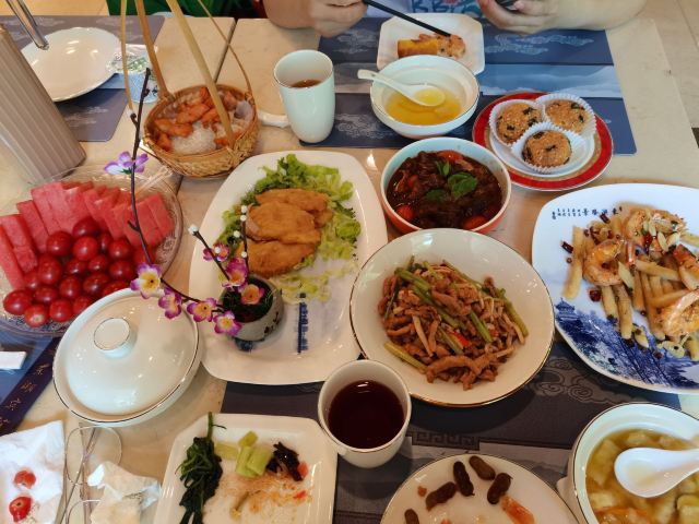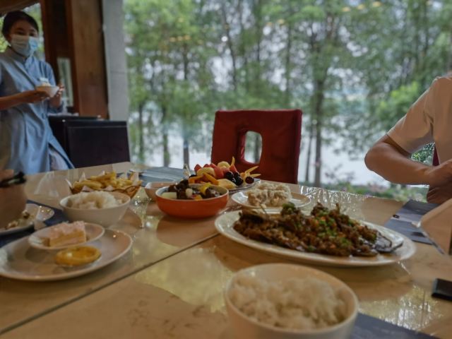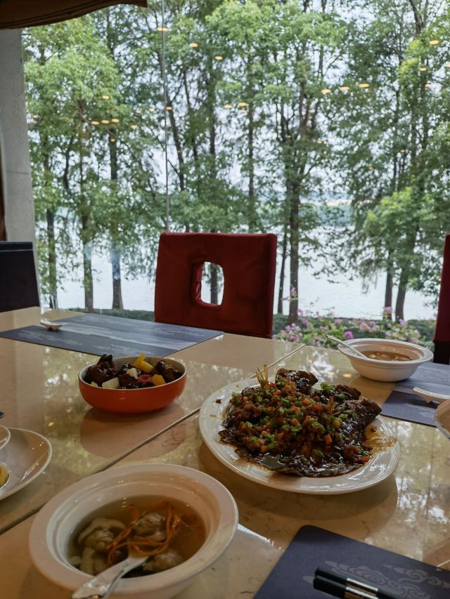 服务真的非常好,工作人员温柔、贴心,胡小枚、闵锦源、张亮亮热情耐心的服务让我们全体感到宾至如归。环境也非常棒,风景非常佳,选了窗边临湖的桌子,视野特别好。菜不出意料的好吃,虾和牛腩非常棒,原材料不错、厨师做的也好吃。份量可以,四位女士吃的好撑,吃完正好在园子里散步。第二次去了,带着长辈朋友依旧会选择这里,哈哈哈哈,服务、菜品、风景都是最好的选择。