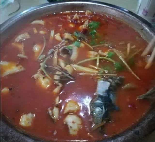 入座后按人数付款,端上来烧好的鱼,里面还有点蔬菜酸蔾,鱼特别嫩特别多,吃完鱼可以加热煮菜,配菜基本都是蔬菜,土豆,粉丝,