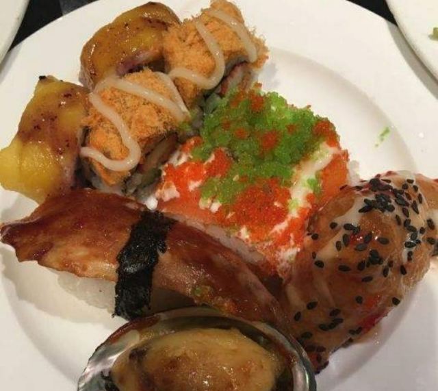 酥皮汤,虾饺,天妇罗,红酒煎鹅肝,大蟹腿,芝士烤生蚝,渤海鲍鱼,生鱼片,寿司,秘制日式蒲烤鳗鱼,佛跳墙,焗蜗牛,鹅肝,法布芮,卤甲鱼,排骨,培根
