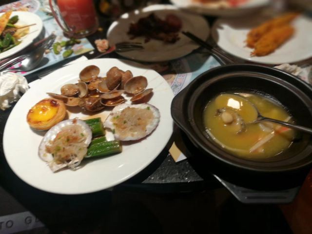 武汉小有名气的老牌自助餐厅,环境也很不错,装修得非常气派,亮丽堂皇,过来就餐有时还能观赏到小提琴或歌唱表演,非常有情调。菜品更是非常丰富,围绕各种菜系的取餐台走完一遍都能花十多分钟,三文鱼非常新鲜,哈根达斯绝对正宗,虾饺、天妇罗、红酒煎鹅肝也是非常受欢迎的菜品。