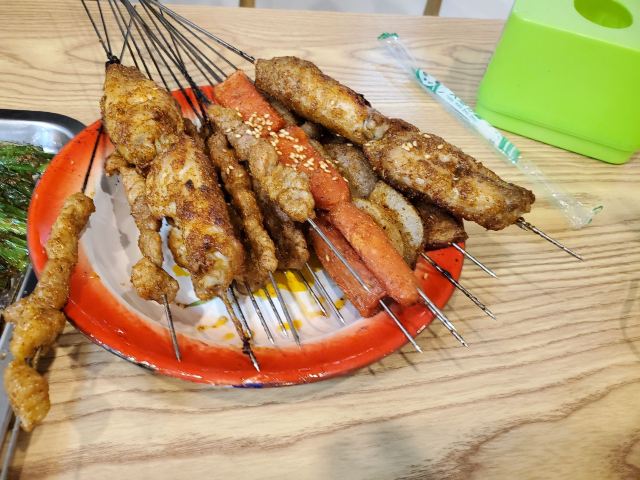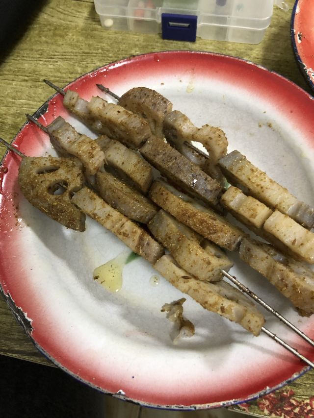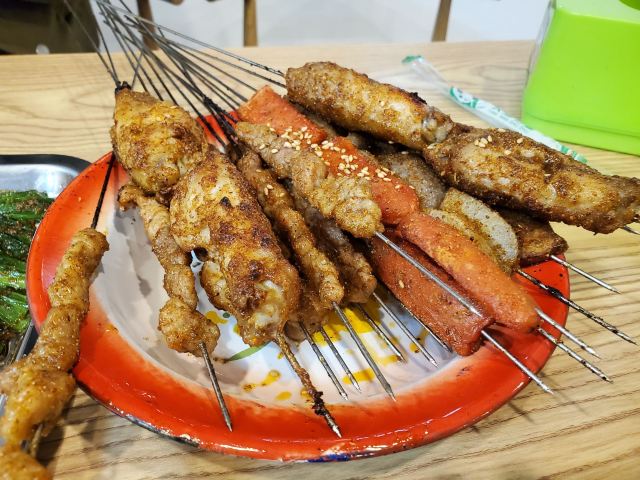 赶到春节放假前小胡子最后一天营业时间,来吃了一次小胡子,味道还是一样的好,肉,筋子,脆骨最好吃。 不过现在天太冷了,烤好的东西一下子就冷了,吃的有点不过瘾。
