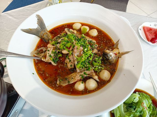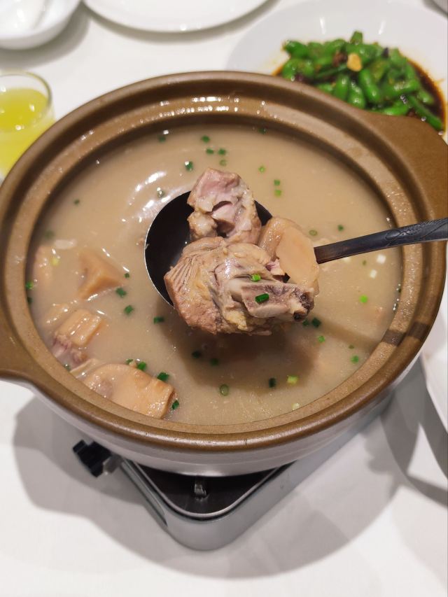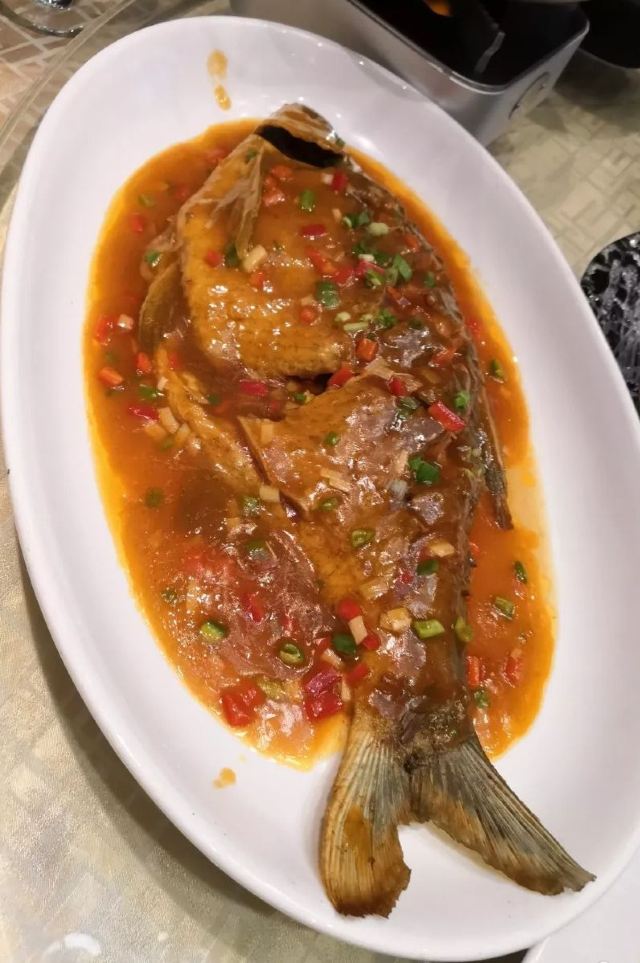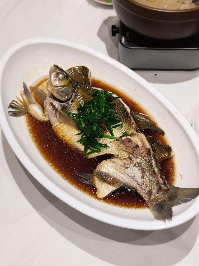 DaZhonghua Restaurant没想到大中华酒楼在洪山金地中心这边也开了家店,刚好在附近送完东西,于是就近过来这边吃了个饭。店子里面比想象中要大,目测有两层的样子,酒店式的装修风格,环境看上去还是挺不错的,桌与桌之间的距离也比较开,最值得肯定的是它家服务员清理餐盘的频率很快。 武昌鱼和藕汤基本上是每桌必点的,也算是武汉的招牌菜了。鱼肉还是挺嫩的,吃的时候记得先把汤汁淋到鱼肉上面,这样吃起来会更入味一些。藕汤里面是粉藕,排骨肉还挺多的,汤喝着比较浓郁。油爆虾的虾肉很Q弹,椒盐凤爪入口即化,最后的冰粉喝着还挺解腻的。