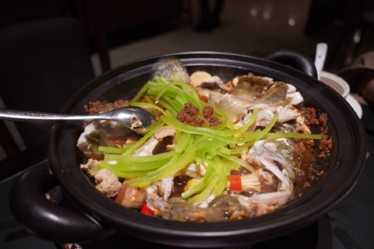 寂寞侯jojo东湖上的某珍珠,总体还是很不错的,湖北菜份量比较足,位菜比较少,好处节约预算也能吃饱,缺点自然是没法尝尝更多了。 「莲藕排骨汤」:湖北的藕在食材上已经占尽优势,湖滨客舍应该用的是藕中佳品中的佳品,食材占了大便宜,自然已经成功了7成,排骨汤这种简单烹调自然不至于做不好那3成。 「姜味猪脚鲜鲍」:湖北还是挺大气的鲜鲍应该有小十个,或者更多,还有大概3分之一的海参,这样一配猪脚身价倍增,也确实酥香软儒,就是吃多了还是会感觉很腻。 「金牌醋香桂鱼」鱼也不错,有种在紫薇厅吃西湖醋鱼的感觉,属于东湖醋鱼了。 「荔枝番茄」最出彩赢得朋友评价最高的是这个小甜品,荔枝小番茄确实超越了我以前心头好江南灶蜜汁小番茄的口感,圣女果加荔枝口感上层次更丰富了起来。 [薄荷]环境:对于一家老店,不知道是不是保养的好,还是有重新装修,还可以不惊艳不局促,晚上看不到东湖,白天应该更好,正常这级别的餐厅。 [服务铃]服务:总体来说很不错,比江浙部分餐厅好,比较热情,菜点多了会给建议,菜品也有介绍,要是看见客人频繁自己倒水,餐厅不是很忙的情况下,主动帮客人倒下水就更好了,与服务人员无关的一条,现在这些人均比较高的餐厅普遍不送水果是我太久没在外面吃所以都和金沙厅学会这样抠成本了吗? 今天10月3号和南京的大佬吃饭,大佬对这评价不高,个人觉得总体还可以,下次有机会去武汉试试旁边大佬比较看好的鹤公馆,据说福建菜正宗过福州,在杭帮菜全国各地到处开花的情况,都有些审美疲劳的情况下,另辟蹊径还是比较难得的。