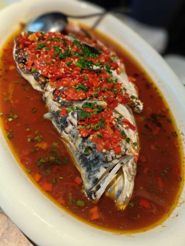 餐厅在东湖景区里,门口有停车位,用餐可免三小时。我是上午去湖北省博物馆,参观完了赶过来吃午饭,两个地方挺近的,吃好了正好逛逛东湖,天气不好也没走远,风景谈不上多好,不过挺安静的,消消食还不错,走累了可以去附近的咖啡店或者茶室坐坐。 说说菜品,餐前的草莓和芝麻饼算是对得起高级餐厅的定位吧,草莓根部都切掉了,看着干干净净,甜度一般,不过今年好像草莓差不多都这样。 我最满意的一道菜是翡翠鱼丸。这鱼丸汤本是经典的湖北菜,现在大多数餐厅都偷工减料用了预制的高汤,我就很反感,难得湖滨客舍用的清汤,还有一人份,必须尝尝。作为当地高级餐厅,不仅升级了食材,也结合淮扬菜的做法,用鮰鱼和肥肉粒手捏而成的丸子,口感和调味都是好吃的,清汤鲜美,连小豌豆也是能掐得出水的新鲜,非常喜欢。 朋友最称赞的是剁椒鱼头,蒸的火候刚刚好,腌制也很到位,剁椒加持之下又有层次感。 他们家粉蒸丸子做的也不错,第一筷子口感很好,口味偏清淡,热的时候有淡淡的粽叶的清香。这道菜建议能出小份,不然人少根本吃不完,凉了口感各方面都会变差。 最后出于猎奇点了个甲鱼包子,其实就是把甲鱼肉和裙边剔骨后做成馅儿,当然不难吃,但没有意外味,不会吃了还想吃。至于包子皮,这个价格面粉肯定不差,但是少了老面的包子总觉得不够香。 服务方面,服务员比客人多,态度也没得说,但是服务标准和专业化有待提高。举个例子,考虑到等热菜时间长于是点了个凉菜,结果先出了鱼汤再出的糖藕,这冷菜就失去了它存在的意义,如果在上海高级餐厅发生这种情况这冷菜我肯定是要求免单的。当然武汉整体消费水平比较亲民,想想就放低点要求吧。