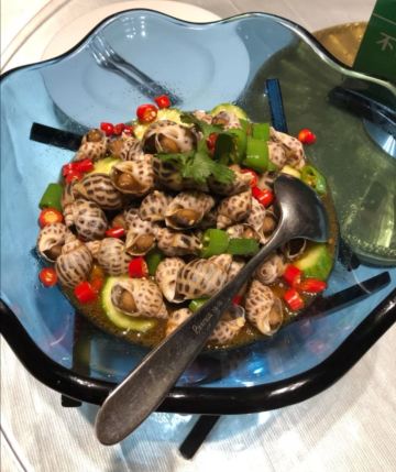秘制香辣小花螺,没有沙,感觉还可以。香菇小,小香菇加清米豆,有香油的味道,很香入口很清淡不油腻,雪花牛肉,比较嫩,锅底很清淡。蒸姜乳鸽,也挺不错的,很有食欲。
