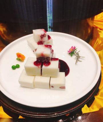 清蒸石斑,有机黑米海参,香煎挪威深海鳕鱼,手撕牛肉,秘制香辣小花螺,黄耳腰豆大连鲍,招牌青椒焖羊肚菌,蚝皇南非鲍鱼两头,蚝皇南非鲍,鲍汁扣关东参,香煎银鳕鱼,果木烤鸭,红烧大鲍翅,锅贴面拼老家糍粑,鲮鱼拌苦菊,餐前甜品,糍粑,三文鱼刺身,酱香鸭舌