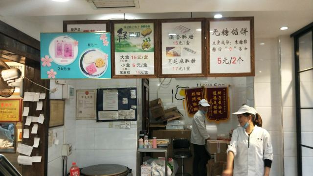 矮子馅饼(大成路店)是司门口小吃中人气很旺的一家店,我去时有排队一个多小时。这家大成路店在十字路口人很多,比其他店生意都要好,评分高,口碑棒。馅饼原来是有12种味道的,我去时只有6种口味了,最推荐喜欢的口味是椰奶、绿豆和芝麻三种口味。平均5元2个馅饼的价格,口感很好,酥酥软软的,好吃不腻。我团购了一个优惠礼盒套装有两盒矮子馅饼,价格还是比较实惠的,礼盒也适合松亲朋好友。矮子馅饼作为武汉特产,是很值得推荐的美食小吃的。