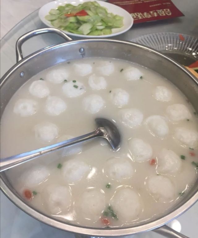 剁椒鱼头,用一个斗笠型的炊具烹制,摆在饭桌上,现场制作,大约二十分钟就可以食用。大红色的剁椒很好看,打底的冬瓜很入味。手工鱼丸,鱼丸细腻q弹,味道纯正,汤汁浓郁,很实在。虎皮青椒,辣的满头大汗。