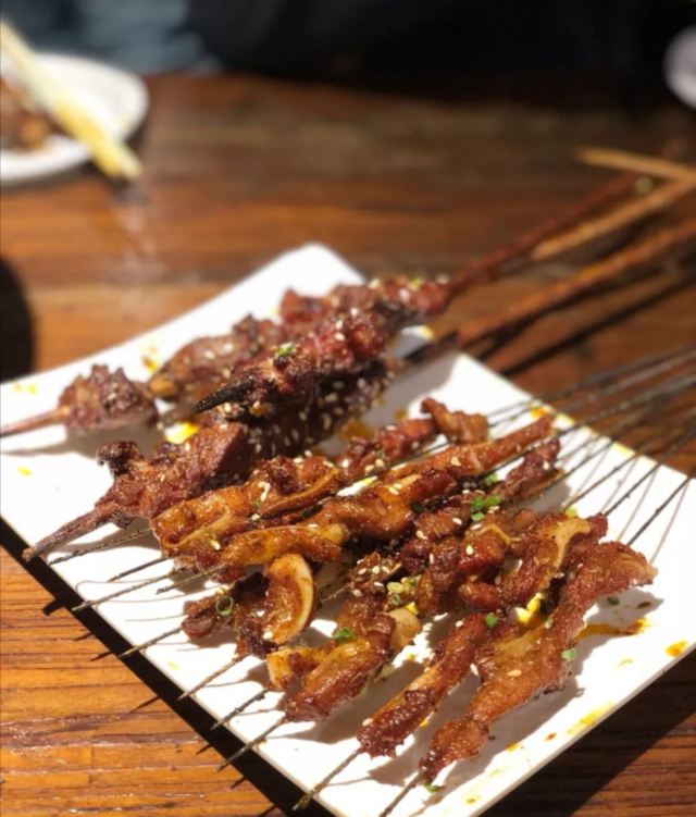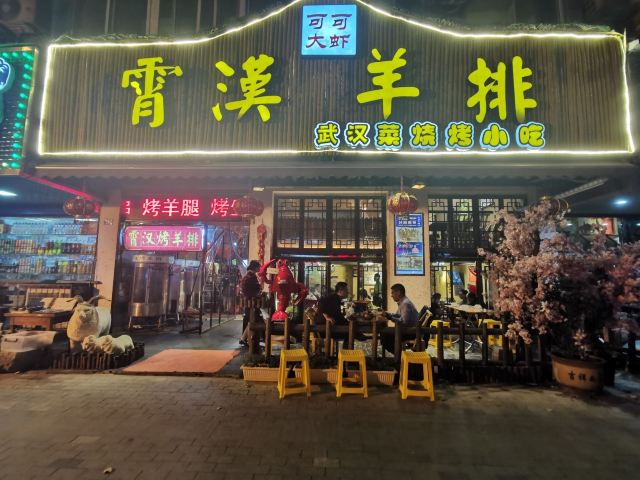 Xiao Han Lamb Chops ( Xue Song Road)这里的羊排味道很棒,羊排烤得外焦内嫩,非常入味。小份的59元,大份118元。羊蝎子火锅是论斤卖的,也是这家店的必点。吃饭间还有民间艺人进来表演弹琵琶,有点像以前的吉庆街,果然是老武汉人的最爱。