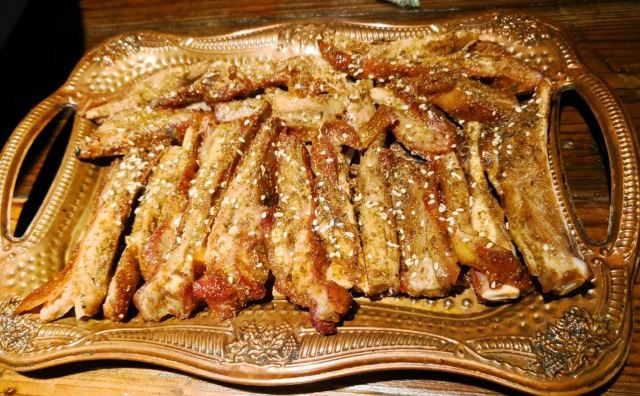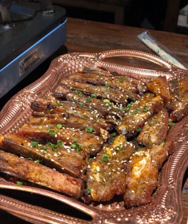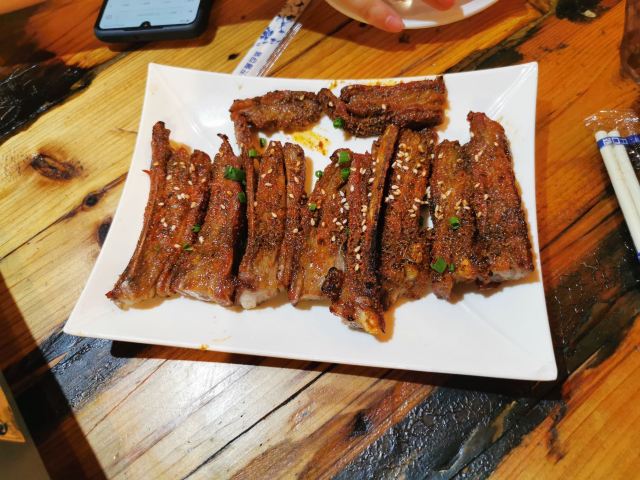 上下两层的一家烤羊排店,招牌菜是霄汉烤羊排,分量十足,肥瘦相间,汁多肉嫩,膻味程度恰到好处,吃的时候可以搭配其他素菜一起吃,否则一直吃可能会感觉到腻。环境和服务尚可,人均不高。
