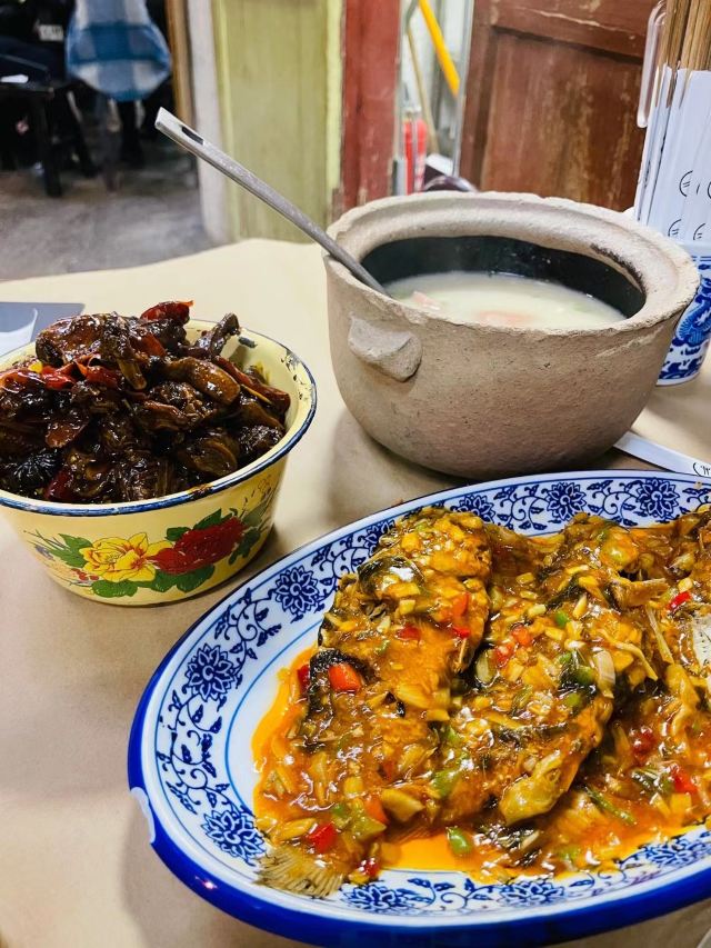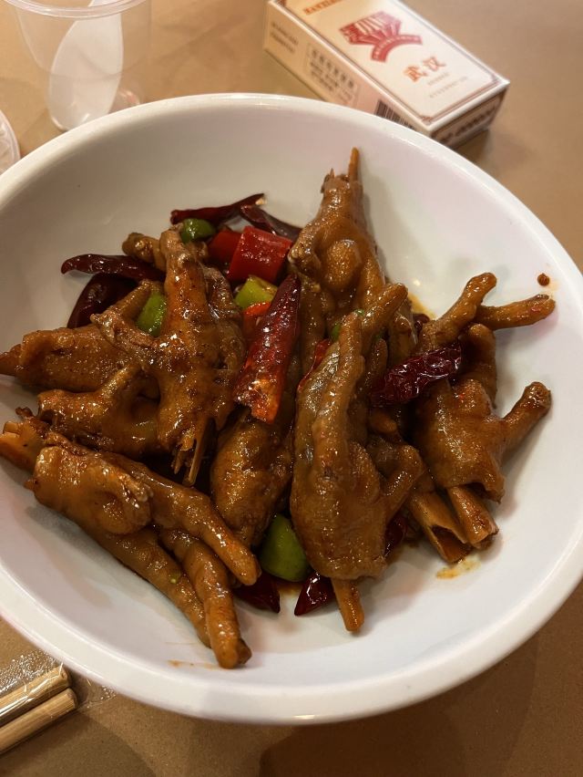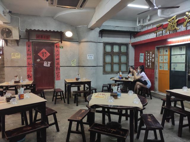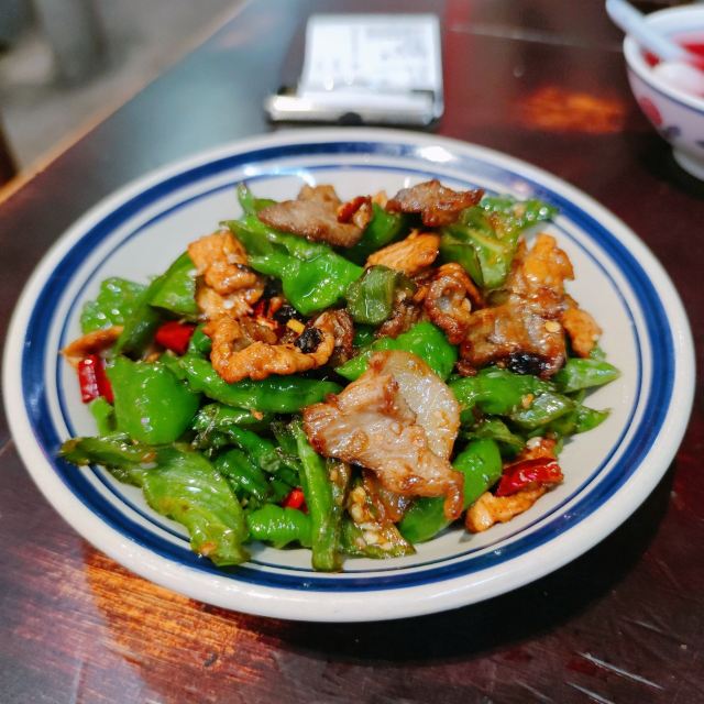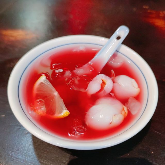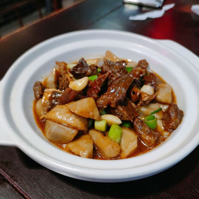 Han Xiaocheng Hubei Cuisine & Lotus Root Soup (Jiqing Street Branch)这家店就在汉口吉庆街附近,位置顺着导航走还是比较好找的。很早之前来过它家,里面的装修整体变化不大,还是保持了以前的风格。很多怀旧的设计,让吃饭的时候有年代感,氛围还是挺不错的,人多会有点嘈杂。可能是天热的原因,入座后就送了碗冰镇杨梅荔枝,口味微甜很解暑。菜品的话比较喜欢小芋儿烧牛腩,汤汁很适合拌饭吃,牛腩很有嚼劲很入味。青椒炒青番茄很有意思,辣椒炒肉比较下饭多一点。