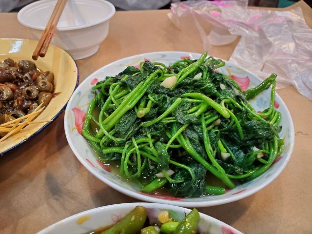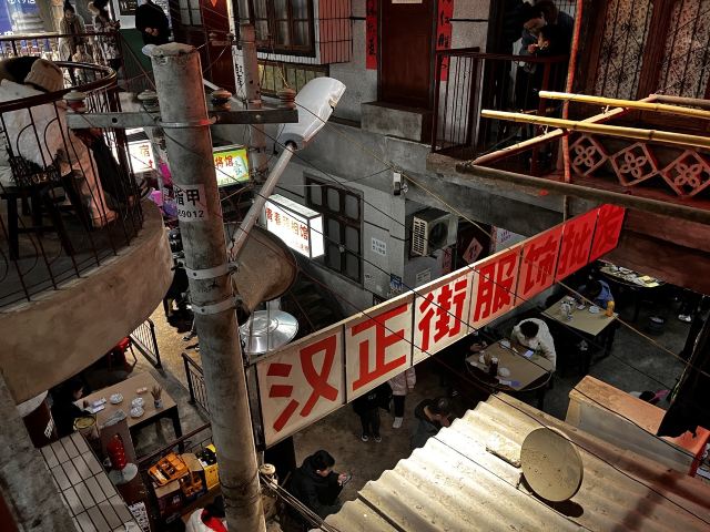 冰之炙点环境: 地址:玫瑰街上。他们的环境非常有特色,简直就是一个情景剧。像像是我在电视上看到的,上个世纪八九十年代的老武汉,实际上那个时候老武汉都没有这么破了,从上面拍视频下来,更象是一个大排档。然后里面有些小广告确实不雅 服务: 有菜单服务员不会主动的推荐菜肴,服务方面有所加强,上菜的速度还算比较快。 油焖大虾^ 每份178元,份量非常足,虾子非常的新鲜,吃在口里有微甜的感觉,而且肉质紧密。这个价格很值得。 但是我建议如果用糖提鲜的话,因为现在有好多糖尿病的还是要注意一下。 凉拌毛豆^ 毛豆颜色很清脆,吃在口里脆脆的。 香辣小田螺^ 非常的入味,朋友都说吃的嘴巴都没有了,因为太辣了。[ 苕尖^ 他们炒的也是很好看的,我们在家里小火基本上炒不出来,都要打火快炒。