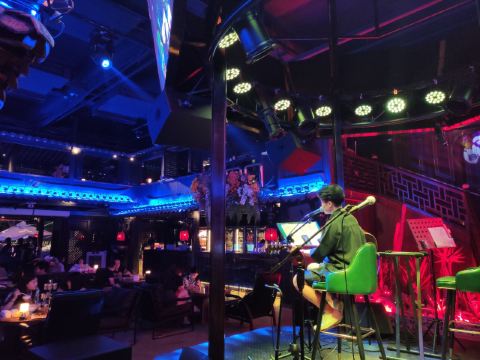 改名当中周末和朋友去探店,可以喝酒、撸串、吃川菜、听歌,简直是聚会的小乐园!7点以后会有表演,驻唱水平还不错,时不时还会请一些乐队来暖场!