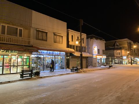 到那里的时候居酒屋还没开门,在外面拍照。这个居酒屋是炉端烧,已经是阿寒湖必打卡的景点了!