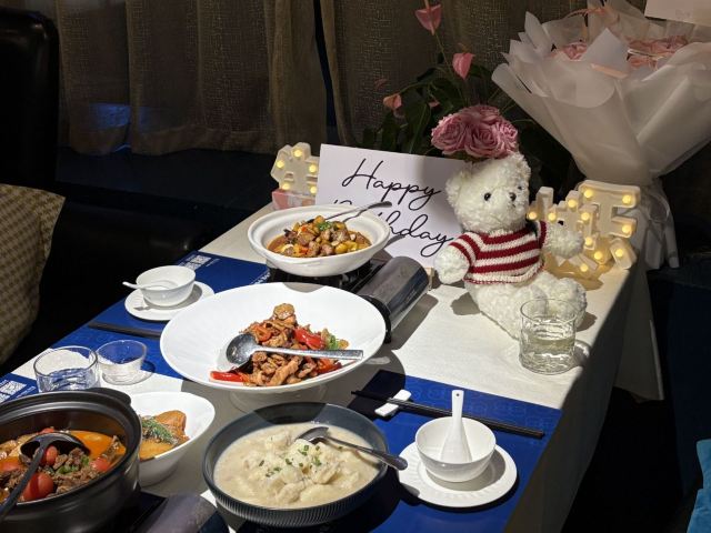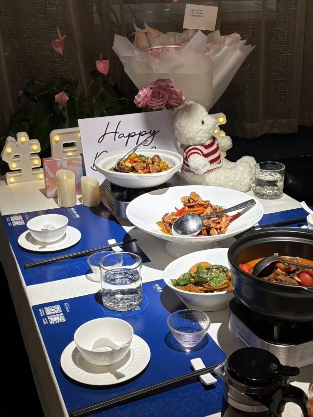 【口味】不是传统的湘菜口味,没有那么重口味.味道很不错,茶油炒鸡肉质鲜嫩、摆盘精美.西红柿牛腩味美Q弹.擂辣椒炒土豆片好吃又下饭,是个经典的搭配 【服务】没有提前告知我们有人过生日,只是听说有蛋糕过来,就主动帮我们做好了布置,非常棒 【环境】安静舒适,配上轻音乐,让人很陶醉,非常适合情侣约会哦
