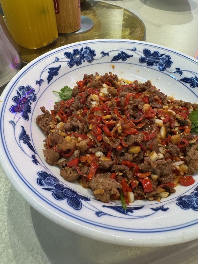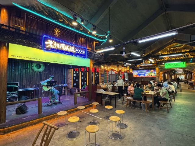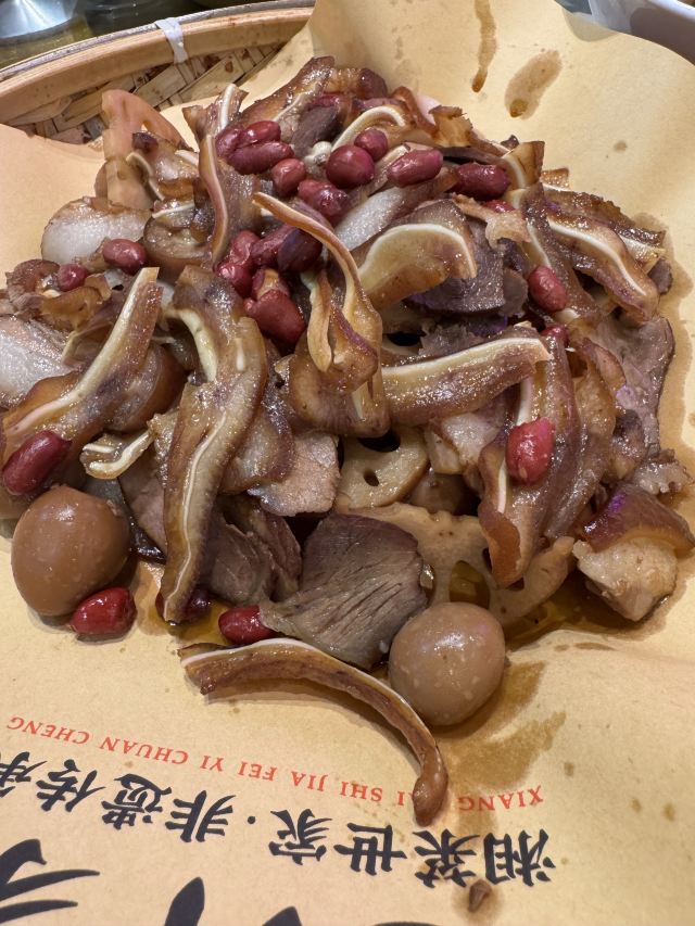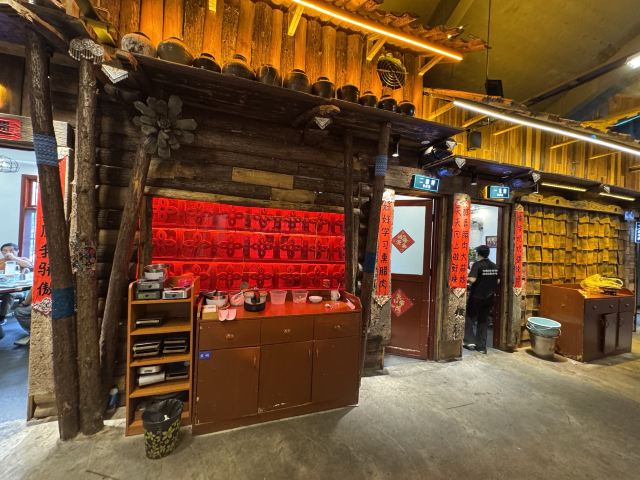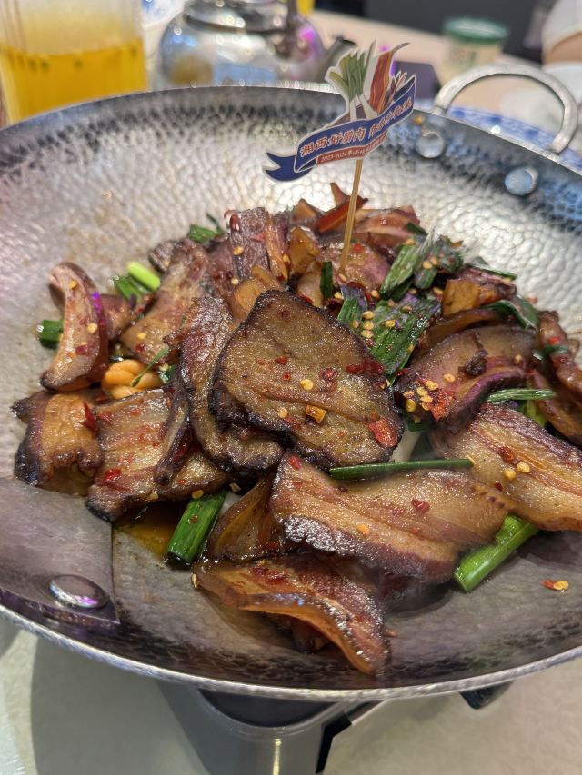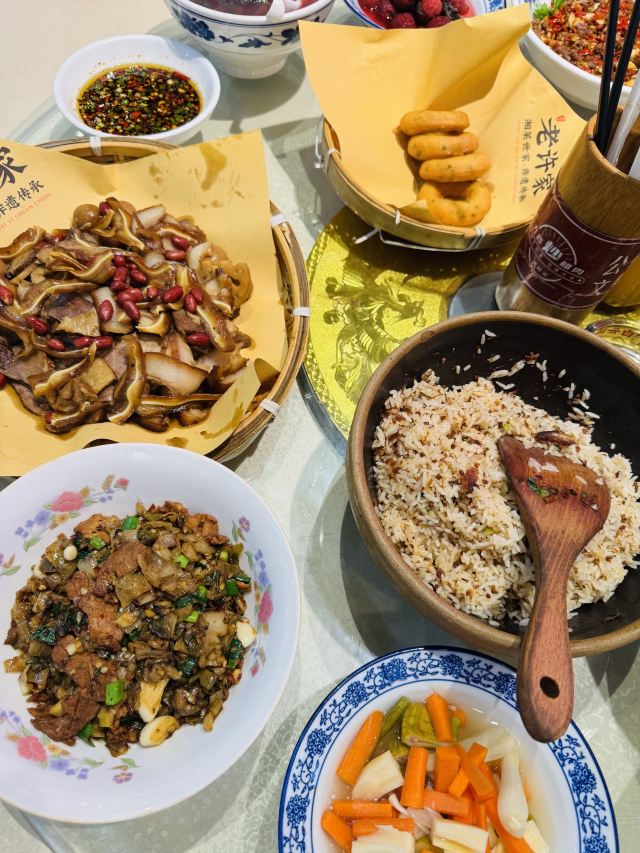 长沙老许家大蒜炒腊肉工厂店。这家店的环境确实挺有味道,老工厂改造的,层高特别开阔,红砖墙和旧标语都保留着。不像有些馆子挤挤挨挨的,这里坐着很舒坦。 他们腊肉就挂在进门处,看得见的风干过程,香味隐隐约约飘过来,还没吃上就勾起食欲。桌椅摆得宽松,说话不用刻意提高嗓门。坐在这种地方吃传统菜,感觉特别对味。那份扎实的烟火气,和碗里的大蒜炒腊肉一样,都是生活中让人安心的事物。
