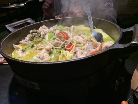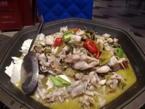 人气特别旺的当地特色餐厅,主打各种牛蛙类菜品,餐厅的装修风格也较为标新立异,随处可见青蛙元素,店内更是洋溢着一种时尚潮流的气息。菜品口味也非常不错,紫苏平锅牛蛙算得上是这里的招牌,分量十足,淡淡的紫苏香味更是诱人;双椒平锅牛蛙也很受食客欢迎。