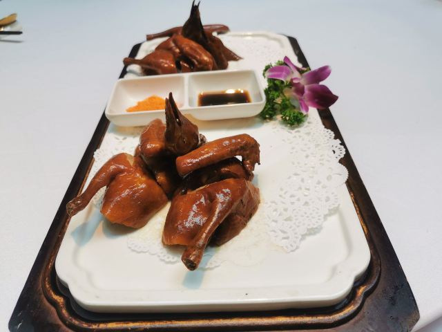 【口味】红烧乳鸽和广州的名酒家有得比,鸽肉新鲜,火侯掌握好,因此皮脆肉香汁多。青花椒烩牛蛙蛙肉嫩滑,爽口弹牙。口味牛排(骨)牛排骨肉滑不柴,配料的土豆吸入牛肉汁更好吃。 【环境】简单的装修更显干凈利索。 【服务】服务非常到位。