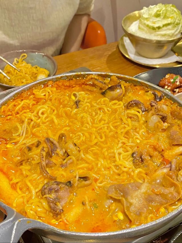 在长沙,我超害怕倒闭的一家店…它真的千万不能倒闭了😭从来没有在长沙其他地方吃过花生酱炸鸡🤯怎么会这么好吃啊!!已经和室友来吃了五六七八次了…真的平价 值得安利!! 【花生酱炸鸡】这种搭配真的!吃了之后直接爱上!!甜辣口的炸鸡 蘸上花生酱绝了🥺韩剧同款的【铁锅辣牛肠】千万别被名字劝退!超级好吃!牛肠没有不好的味道 jujuju香【奶牛章鱼锅】还加了半罐旺仔牛奶!听上去很黑暗 但是超级好吃!下一份方便面进去 加上芝士🧀️煮得黏糊糊的 超好吃!!连牛奶冰用的也都是旺仔!! #好吃但平价的食物 #好吃但不起眼的店 #美食旬味会 #真香小吃大集合 #当地才能吃到的美食