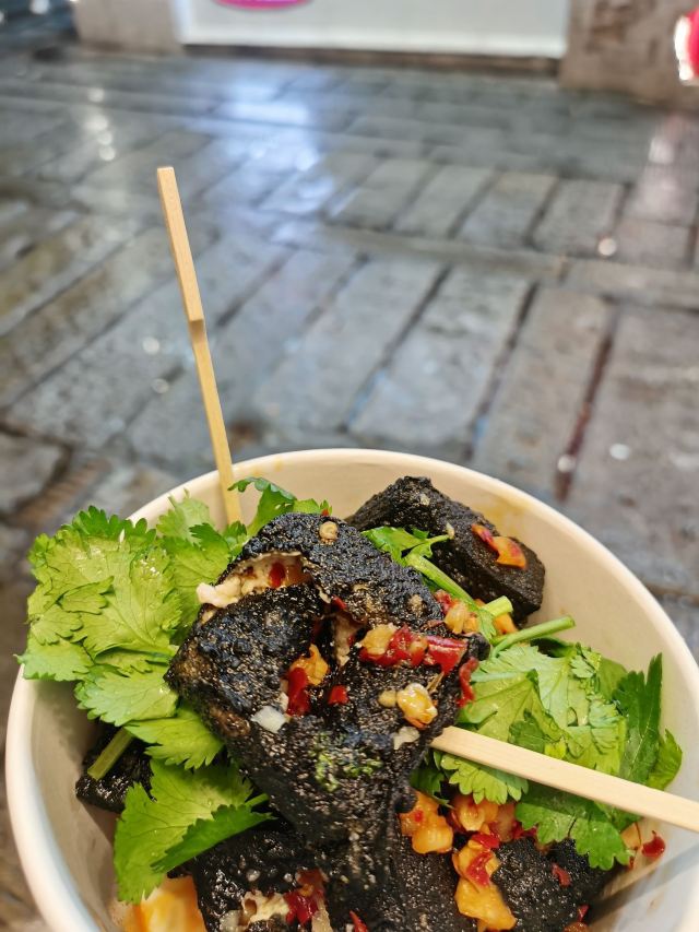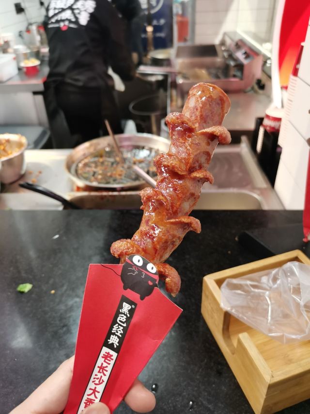 Heisejingdianchoudoufu (taipingjiekou)大份的臭豆腐有十块,非常的满足了,在上面开一个小孔,把汤汁都浇进去,真的是一点也不臭,大香肠是不用等待的,可以先吃大香肠,再慢慢等臭豆腐,吃过黑色经典,长沙才没白来!