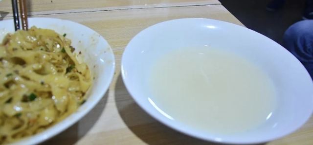 这个冬天来上一碗,谁能抵挡它的诱惑。就着葱末和炸酱一起搅拌,吃起来有劲道,面滑但是不粘,而且油香扑鼻。吃起来筋道爽口、香味十足。由于吃的面都没有汤,比较的干。所以吃完面的时候,店主会为大家准备一碗热好的白米汤。