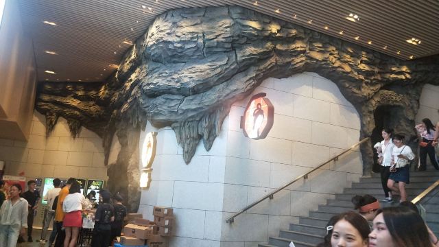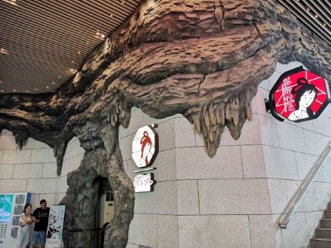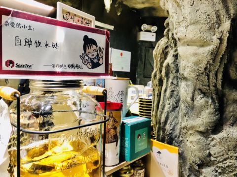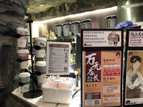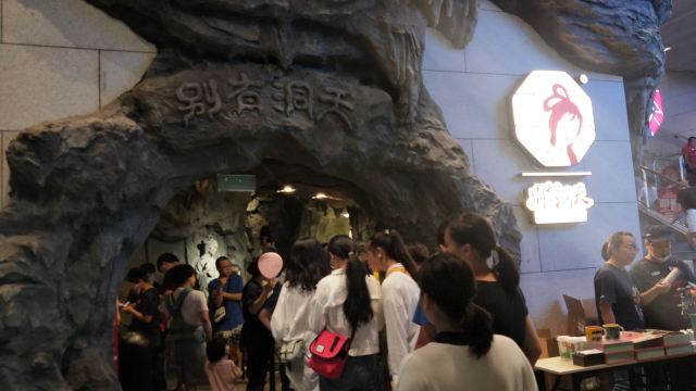 🌈到长沙必须打卡的长沙本土奶茶品牌➡️🔥长沙最受欢迎的茶饮品牌之一。 坐标📍长沙解放西路国金街9号出口夹层,隐匿城市繁华中的清净之地,闹市中辟得一处静谧诗意,是当代人不可多得的念想与渴求➡️茶颜悦色(国金街别有洞天店)。 💠【环境】相比较之前的主题概念店,这家店面显得尤为特别❗️光从门面上不仔细看会以为是参观的景点,➡️整家店用钟乳石打造而成,石材附着于钢筋水泥的建筑之中,整体设计给我们一种身处大自然中的极度体验,设计者将休息区设置为静心之地,主要是想让人们放下浮躁、静心轻欲之心;从另一处洞穴口走出店外,经过一番辗转反侧,又回到繁华闹市,有种恍如隔世之感。 运气超级好,这次奶茶竟然只花了2元💰:之前➡️扫码关注➡️公众号注册会员➡️每到生日月可得生日券一张(一年内有效)可以免费无门槛任选一杯奶茶,就是用的生日券。 ♦️【人间烟火】▶️茶颜家比较热销的爆款奶茶➡️标准冰• 标准糖~大红袍茶底+奶油+碧根果碎♦️奶油版的烟花易冷,特别有颜,茶味挺浓的,口感nice。 💠【服务】必须点赞,一边排队还有店员给试喝新品,进门全体店员会异口同声“欢迎茶颜”,特别热情;障碍点单时会适当给予推荐。