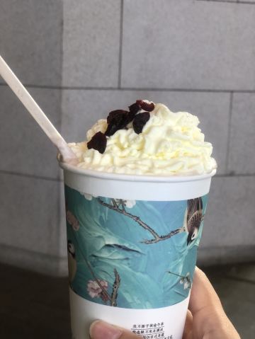 筱风姿第三次打卡茶颜悦色 已经在长沙看到翻版了 看来这的是哪个火肯定要被翻炒一下啊 还是认准茶颜悦色的招牌再去喝 特色店铺:别有洞天·茶颜悦色 坐标:天心区国金街9号口夹层(黄兴铜像进入) 环境:以为不是店铺,是姑姑的洞窟吗?也有点点像李秋水的那个洞[偷笑]还蛮有古风特色的、建造的人很用心。 蔓越阑珊 ¥17.00 因为上面是蔓越莓,所以整体都有点点酸甜,但是奶油还是很好吃,蔓越莓是切开的一小粒一小粒的,还可以,里面应该是乌龙茶,茶香浓郁。 不过真的不打算改进一下吸管吗?上面的奶油吃起来不方便,要么搅拌了没有奶油的那种吃法,带个小勺子的会好很多。