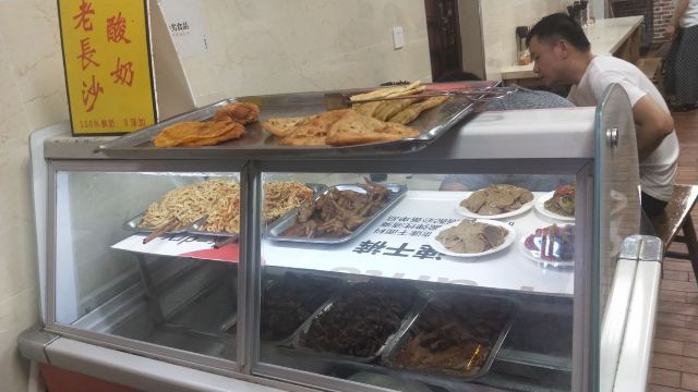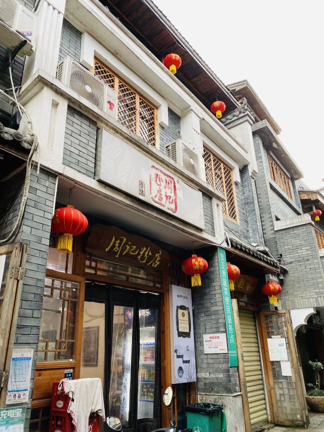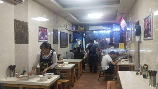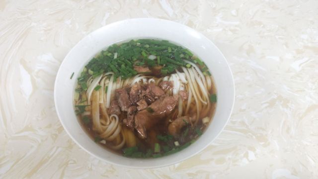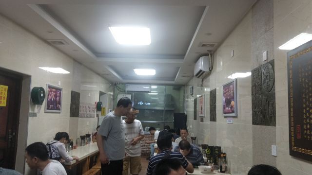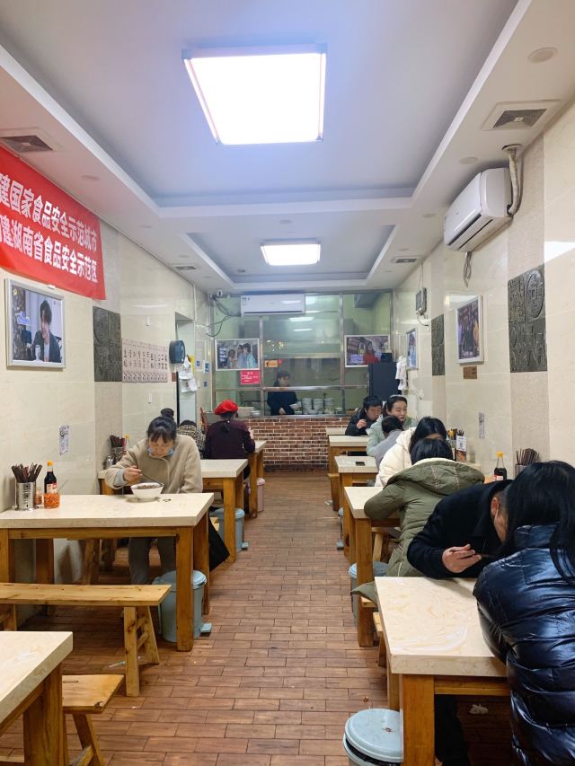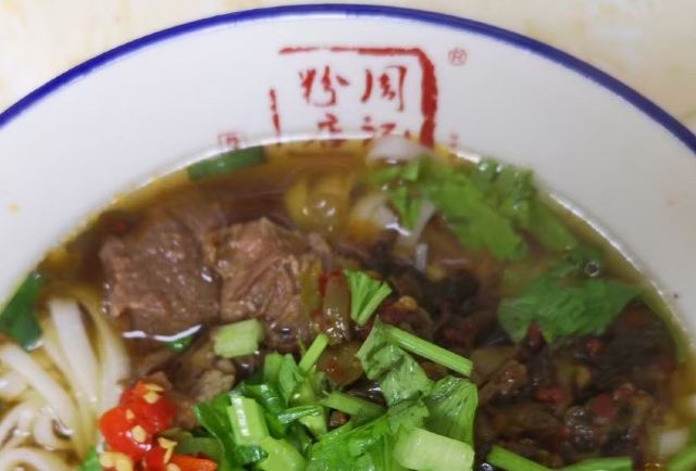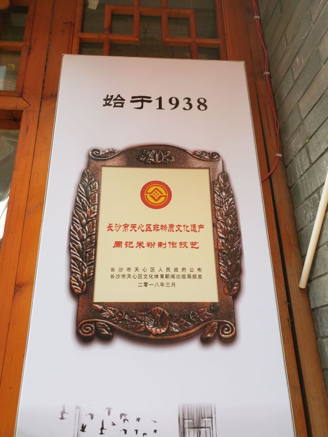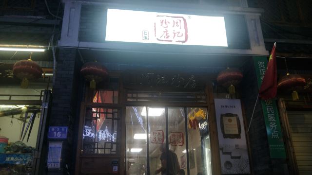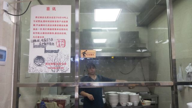 店名:周记粉店 地址:长沙芙蓉区蔡锷南路县正街16号 营业时间:全天24小时营业 体验菜品: 原汤肉丝粉,单价11元一碗,到店出示支付宝二维码给店家扫码付款。会给两个牌子,走到里面做粉处给牌号子说是一个牌号粉一个牌码字),这家面是扁粉,面条比较劲道,汤汁鲜美,里面放有不少牛肉,还有一些葱,味道还挺好吃的。推荐。 环境: 店里有十张桌子,其中一边六张桌子,另一面三张桌子靠墙。桌子上有筷子、辣椒、酱油、醋等调料,墙上有两处挂有抽纸,店里有3个空调。里面是工作重地闲人免进。店里环境比较简单,有插口可以手机充电,待着也还可以。 这是一家网红店,因汪涵常光顾而名声大燥的粉店,也是本人慕名来打卡的一家长沙热门粉面馆。