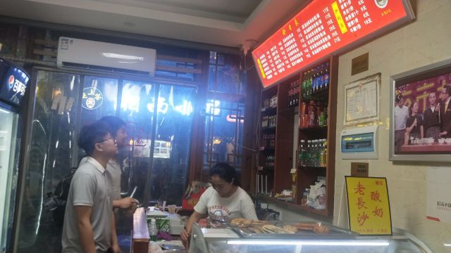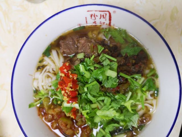 蓝海清风1号店名:周记粉店 地址:长沙芙蓉区蔡锷南路县正街16号 营业时间:全天24小时营业 体验菜品: 原汤肉丝粉,单价11元一碗,到店出示支付宝二维码给店家扫码付款。会给两个牌子,走到里面做粉处给牌号子说是一个牌号粉一个牌码字),这家面是扁粉,面条比较劲道,汤汁鲜美,里面放有不少牛肉,还有一些葱,味道还挺好吃的。推荐。 环境: 店里有十张桌子,其中一边六张桌子,另一面三张桌子靠墙。桌子上有筷子、辣椒、酱油、醋等调料,墙上有两处挂有抽纸,店里有3个空调。里面是工作重地闲人免进。店里环境比较简单,有插口可以手机充电,待着也还可以。 这是一家网红店,因汪涵常光顾而名声大燥的粉店,也是本人慕名来打卡的一家长沙热门粉面馆。