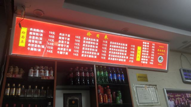 红烧牛肉粉,杂酱干面,杂酱米粉,原汤排骨手工米粉,肉饼蛋原汤肉丝,原汤肉丝手工米粉,牛腩,原汤酸辣手工米粉,煎蛋,米粉,肉饼蛋,肉饼蒸蛋粉,香菜鱿鱼,麻辣鸡丁,酸辣鱿鱼粉,爆炒耳尖,原汤牛腩粉,豆奶