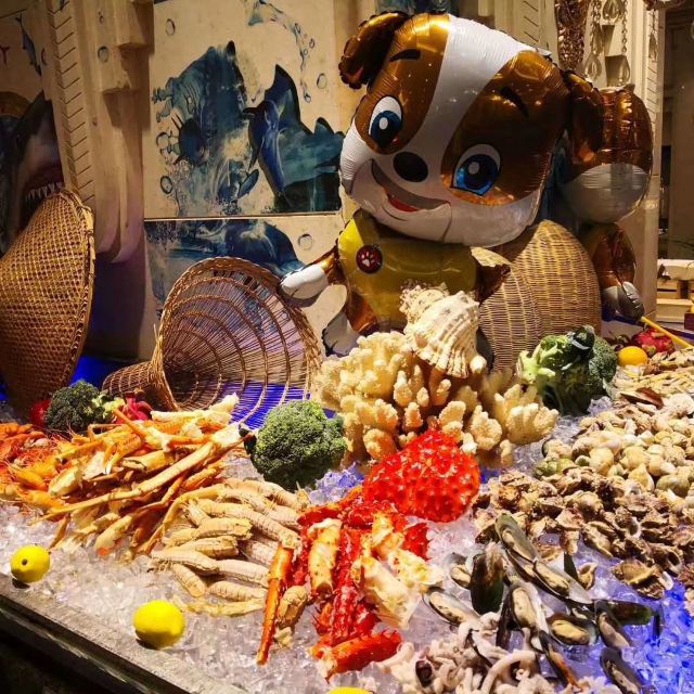 大闸蟹,鲍翅捞饭,羊排,烤牛排,黑蒜烤生蚝,三文鱼,芝士蛋糕,香煎鹅肝,佛跳墙,渤海鲍鱼