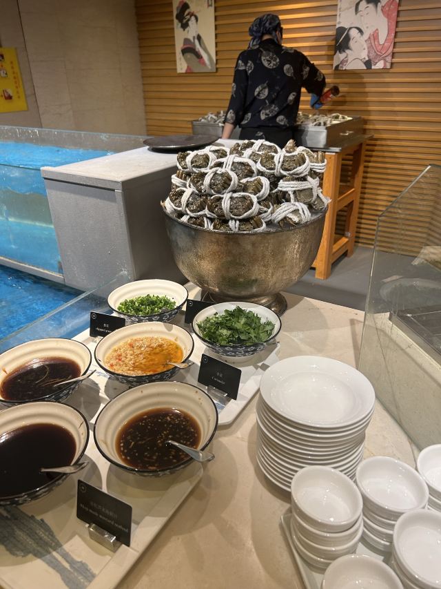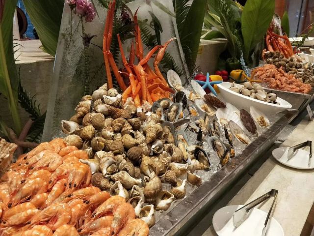 酒店出品的自助餐,环境一流,给人一种简约大方之感,桌椅也摆放得很整齐,让人有非常愉悦的用餐体验。菜品种类丰富,从意大利风味美食,到日本特色料理,再到当地热门菜肴,应有尽有。特别推荐这里的鹅肝,生蚝、鲍翅捞饭。