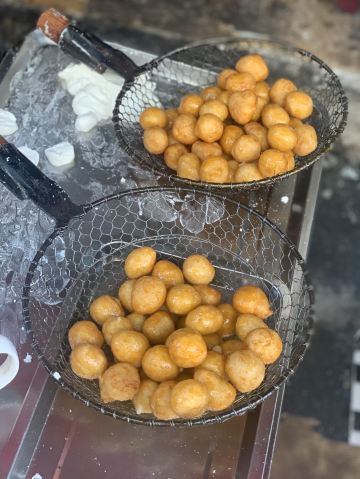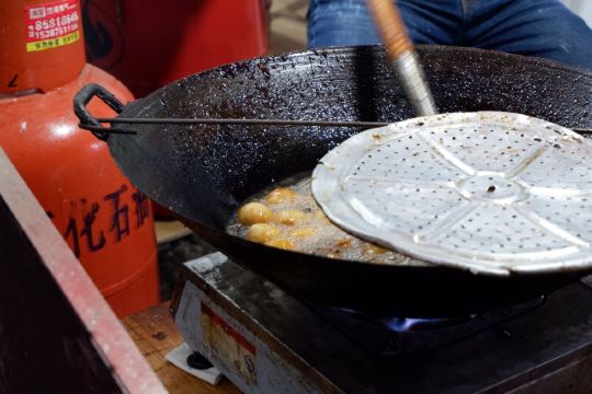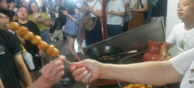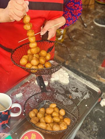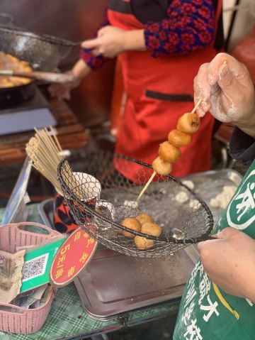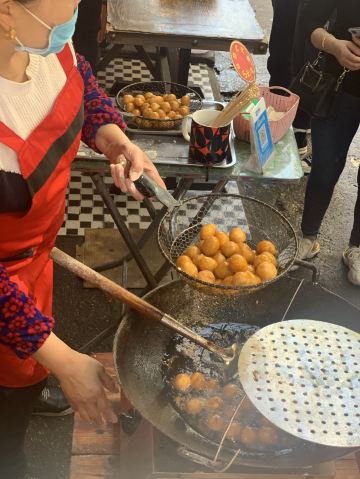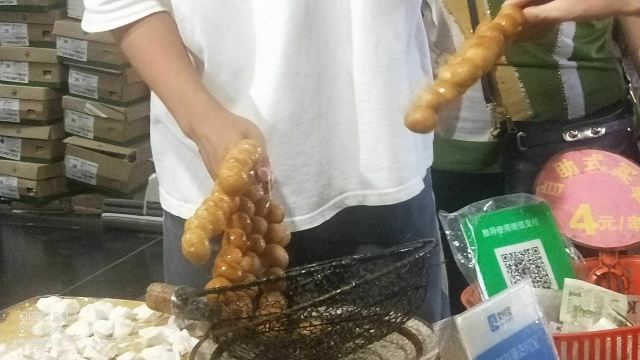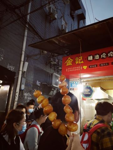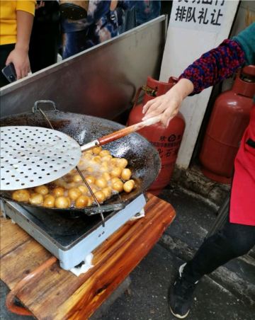 摩小亚在作长沙的美食攻略时,我看所有的帖子都有推荐这家糖油坨坨,所有我虽然没很大兴趣,但是也觉得要去试试看。 因为看卖相,和我们成都的糖油果子很像啊,所有没有特别的新鲜感。 其实吃过就晓得,两种东西看起来像,口感其实差很多,这个糖油坨坨是实心软糯脆,成都的名小吃糖油果子是半空心的糯酥脆。 不过呢,我更喜欢吃我们成都哦糖油果子,建议大家来成都一定要找一家正宗的品尝哈。 现炸现穿,生意很好,但是一锅的数量 有限,所以排队还是有点难等。 建议错开节假日或者饭点时间,会不用等那么久。 我是周五的中午去的,因为正值旁边学生中午吃饭时间,加上其他游客,导致我还是等了接近半小时吧。 想必国庆那种长假肯定要等 很久很久。 为了一串糖油坨坨,我觉得超过30分钟的排队就不值得了,错高峰前往吧,节约时间多打卡几家其他的美食。