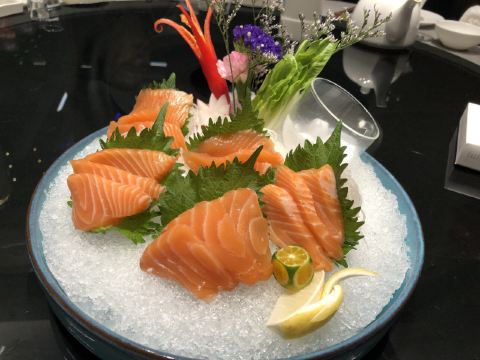 清蒸多宝鱼,冰镇芥末花螺,椒盐龙虾,虾菇王,小米煨海参,三文鱼刺身,酱油炒饭,蒜蓉粉丝蒸龙虾仔,砂锅10头鲍鱼仔,辣酒煮花螺