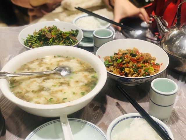 鸭掌筋,红烧米豆腐,泡辣椒炒牛肉,酸辣鱿鱼卷,酸萝卜炒肚丝,香菜炒牛肉,辣椒炒肉,火焙鱼,酸萝卜鱿鱼,酱香蒸肉,腊味饭,牛肉猪油拌粉,香蕉飞饼,酸包菜肉泥,臭豆腐,口味虾,剁椒鱼头,糖油粑粑,米粉,黄鸭叫,刮凉粉,芋头娃娃菜,青椒炒捆鸡,肉嫩子火焙鱼,手撕空心菜埂子,外婆菜螺丝肉,火培鱼肉嫩子,叉烧肉,珍珠丸子,干煸鳝鱼,卤味下锅,大杂烩火锅,红菜薹,酸菜豆腐脑汤,猪油拌粉,辣炒鸭掌筋