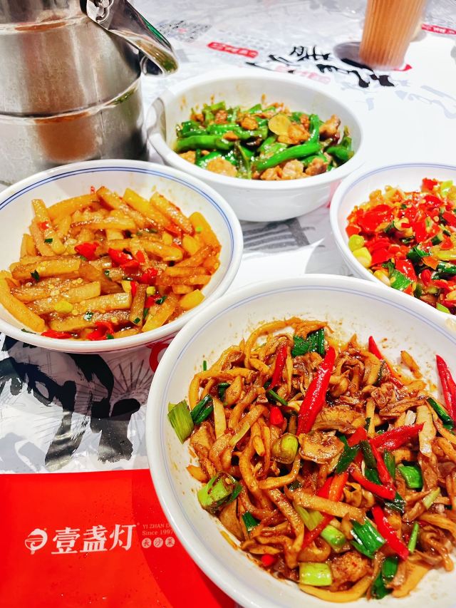筱风姿长沙美食推荐|正宗的湘菜•壹盏灯 来到了长沙,发现美食真的超级多,而且都相对比较集中 正好这家壹盏灯就在我住的对面楼,那怎么可以错过呢?睡醒了就立马跑去吃午饭了,还好起的不算太晚,没有排队,直接进去吃了,稍微晚一些就要排队了哦,这里门口给排队的亲准备了超级多的椅子休息排队,可见他的生意极好。 •位置:东牌楼街蚂蚁工房2楼 •交通:地铁五一广场站,IFS东侧楼 •营业时间:11:00-15:00/16:30-21:00 •人均:¥80.00 •服务:态度还好吧,毕竟每天那么多人,不能要求太高,能正常服务即可,不过最后给我收拾的阿姨态度还蛮好的。 •环境:这一幢楼还是蛮神奇的,这里很多民宿、酒店,一楼也是酒店的前台,二楼就是用餐的地方,整体环境还是比较暗的,但桌面看着还算整齐、感觉。 菜品情况: 1, 酸萝卜炒肚丝 ¥48.00 特别推荐 没想到这里的碗都是实实在在的碗,不是那种盘子很大菜量很少的,他每一份都是量超级足的,所以点菜要量力而行,少点一些。普通的一个大碗,酸萝卜和肚丝都是一条一条的,颜值上倒是很家常,没有特别的地方。 由于我非常喜欢酸酸的菜,正好这个酸萝卜真的很酸,搭配肚丝一起吃,超美妙的,巨好吃,辣度上的话是微微辣的,不用担心会辣到自己哦,很下饭,超推荐。 2,猪油拌面 ¥8.00 价格倒是非常的实惠,猪油很香,一定要马上搅拌,搅拌好了再吃,猪油的香和宽粉的软还不错;颜值上的话,其实就这样不算多么好看,很朴实,就是宽粉和杂酱的组合。 3,豆腐脑汤 ¥12.00 这个就是咸的豆腐脑,个人感觉汤多了一些,豆腐脑我喜欢汤少一点的,咸菜不是很好吃,换一种好吃的咸菜就好了,酸菜鱼里面的那个咸菜?而且这是一份很大的汤,水有很多,会显得超级大份,碗也是非常朴实的白色大碗,看着很大。 4,酸包菜肉泥 ¥28.00 超级下饭的一道菜,酸包菜剁的非常碎,他给搭配了一个勺子,还真的很有必要哦,放在猪油拌面里面居然还不错,本来都吃饱了,因为酸,又下了几筷子。感觉他们家的菜都很相似,碗很质朴,量很足,很家常,怪不得那么多人来吃。 5,口味冬瓜 ¥18.00 这个是我点的唯一一份被标注了辣的菜,本来很担心我吃不了,最后发现,不要被浸着汤汁的还好,不是很辣,还好还好,就是比较烫。如果是凉拌菜估计会更好吃一些。