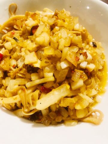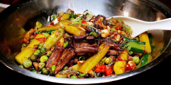 老姜炒鸡,老长沙糖饺子,冰镇杨梅,皮蛋肉泥,孜然牛肉,酸包菜炒粉皮,剁辣椒蒸鱼头,五花肉炒猪舌,爆炒牛蛙
