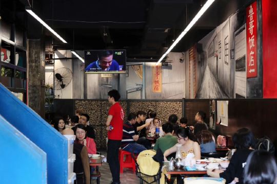 LU GE FAN DIAN名气很大,据说以前是苍蝇馆子,开了18年了,传说中中山亭三剑客之一,早已名声在外,属于老长沙的家常菜馆,现在开了新店,在黄兴北路北正街上。附近有地铁一号线培元桥站,交通很方便,附近也有停车场,没有因为火了而提高价钱,良心商家,性价比超高。 【环境】典型的湘氏文化装修,店面有两层,位子宽敞数量多,就餐环境舒服。朋友小聚或是家庭聚餐都极为合适,所以自然而然排队的人特别多,每次路过店外都排了好多人! 【口味】 {孜然牛肉}必点的大招牌!牛肉切得比较碎小,适合用勺子挖着吃,肉质细嫩,口感还不错,超级下饭,油比较重,炒出来香味十足,还比较有韧性,而且伴着孜然粒,配饭的绝佳搭配! {茄子咸蛋黄}推荐的人比较多,与其他家的炒饭不一样,炒得带了些汤汁,茄子切得比较细条,但是沾满了咸蛋黄,口感软糯,还是值得一试!但是油稍微多了点,吃多了稍稍有点腻。 {口味米豆腐}作为豆制品爱好者,这是我一定要尝试的一道菜,米豆腐容易做得碱味过重,但是鲁哥处理得还不错,特色是在豆腐里加入了一些腊八豆搭配,不全是单纯的辣椒味,所以让这道菜本身更加鲜香,必选推荐!{德茂隆酱香干}也强烈推荐,很不错!豆制品忠实爱好者! {老长沙糖饺子}糖饺子作为老长沙的一种小吃 ,很多店都有做,但是形状味道都不一样,这家店的糖饺子是类似圆柱体,炸出来后沾的不是白糖颗粒,而是经过碾碎的粉末状白糖,个人还比较喜欢,口感比较软糯。 {酸萝卜牛百叶}鲁哥真的是主打下饭,酸萝卜很脆,切得细细的,放了牛百叶之后,口感更加独特鲜美,也推荐尝试! 【服务】每天排队吃饭的顾客骆驿不绝,在外排队天气热的话还是有点难受,建议可以提供一些饮品或者冰棍。口味总体来说还是不错的,算比较可口的老长沙味道,但是还是感觉可以再推出几个主打的特色,服务的话还是比较到位的,有什么需求都能满足!值得拔草!