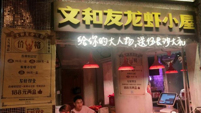 爱吃爱玩的懒猪猪长沙美食必打卡|不愧是排队7000桌的文和友,也太好吃了吧! 我们是去年3月份去的文和友,还没感受到文和友可以火爆到那种程度!排队7000桌的新闻是后话了,这是去年5月份的事了。 长沙短暂中转,时间有限,又不是吃小龙虾的季节,更怕吃饭排大队浪费这更有限的假日时光,所以两人一直在犹豫要不要去吃。 然而当时在西安吃过一次长沙小龙虾后的念念不忘以及来到长沙不吃小龙虾的不甘心,两人在晚上十点多一致决定冒雨去吃小龙虾(外面下着小雨)。提前打了电话,说5-10分钟就可以吃上,简直太幸运了,冥冥之中吸引着我们! ✅ 就餐环境 3月中旬,晚上又下着小雨,还挺冷的。店家贴心得在外面摆了个大炭盆让排队的人烤火,很暖心,点赞!!! 不到2分钟,就被安排到了二楼,一进去完全惊呆了,没有想到里面别有洞天,简直就是藏了一个mini版的老长沙嘛!一座古旧的四五层楼,处处充满了老长沙的回忆,就算没见过旧时的长沙,也能感受到那市井的气息,尤其是大家撸着袖子吃小龙虾的时候。绝对! ✅ 点菜推荐 两人已经饿坏了,拿起菜单一顿狂点,只是这个点蟹头已经没有了,遗憾。 虾尾 小虾尾,很入味。份量也很大,吃了一晚上也总有一种怎么也吃不完的感觉。。。还是第一次这么觉得。所以性价比超级高,必点! 口味虾 个头中等,口感还不错,也很入味,作为招牌感觉没有很特别的惊喜。可能是各地小龙虾吃太多了。。。 文和友虾 和文和友虾一样,还不错,但也没有很特别的惊喜。可能我们更想尝一尝卖完了的蟹头。 红柳羊肉串 绝对是巨大惊喜!平时很少吃羊肉串的我直惊呼也太好吃了!一共点了两份。 猪油拌饭 第一次吃,2块钱一碗,小小的,但巨好吃!超下饭!双手都在奋力吃小龙虾,所以没拍照。我只知道隔壁桌四个人一人点了4份。。。 老长沙刮凉粉 第一次尝试,没想到这么好吃!当凉菜配小龙虾很赞! ✅【服务】 吃饭的人很多,服务员就会显得少一些,有时候忙不过来,有时候会忘上菜,所以,为了自己的肚子,一定要记得催! ✅️,说了这么多,最重要的信息来啦! 店名:超级文和友(海信广场店) ⏰营业时间:11:00-次日3:00 人均:120元