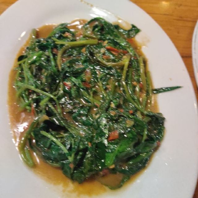 携程可以网上订座位,实在是太棒了阿,里面的奶油虾做的很好吃哦,虽然卖相看着比较的一般,沙爹肉串的味道也很不错哦,空心菜很嫩。