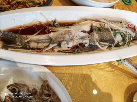 从携程上看到的,直接导航了,味道真不错,门脸不大,但是里面很亮堂,小虾头全部剪掉了,鱼炖得很鲜嫩,三个人140,价位也可以,要了两张名片,希望还有机会来,虽然这次仅仅是路过,推荐