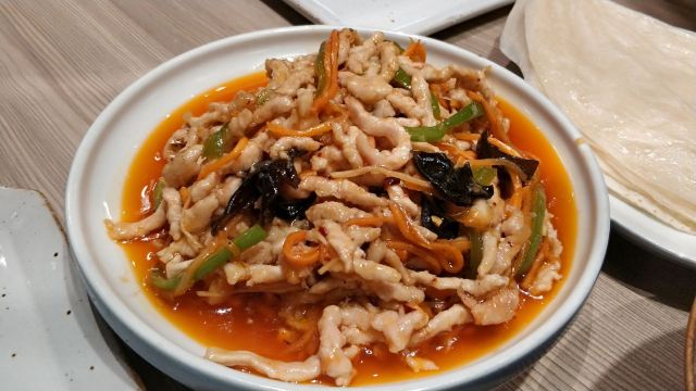春饼,并非源自北方,却是哈尔滨这座北方城市的特色美食。哈尔滨的老昌春饼是老昌食品的一个分支,盛行多年依然品牌影响力很大,多家分店都是标准化的经营模式,明档制作不仅让食客看的明白吃的放心,也增添了趣味性。筋饼薄如蝉翼劲道十足,春饼面香浓郁口感极佳,搭配上卷饼菜更让我们在与食材的互动中体验到乐趣!推荐!